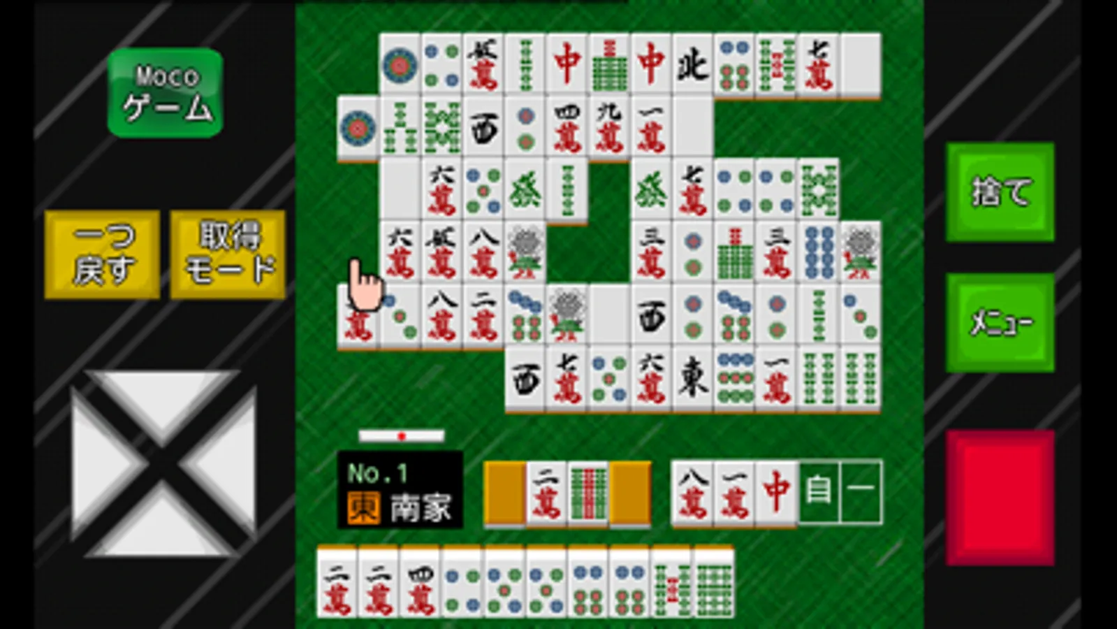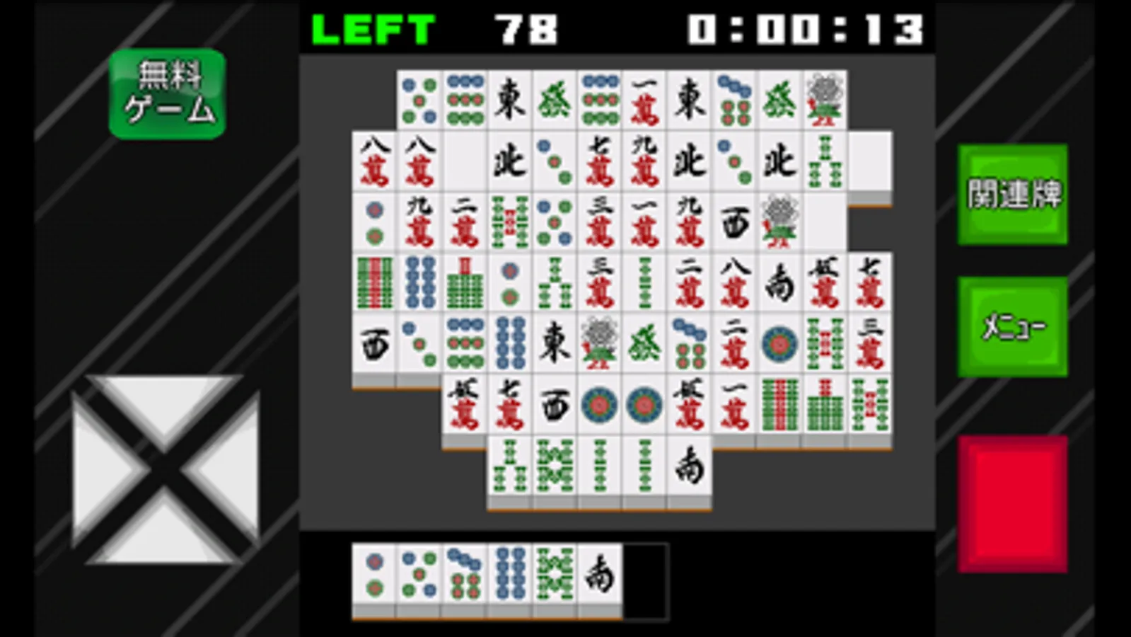 麻雀牌が並べられているので、そこから牌を取って順子または刻子を揃えて消すゲームです。成功率はそこそこ高いです。このゲームのみ麻雀を全く知らなくても、問題なく遊べます。
