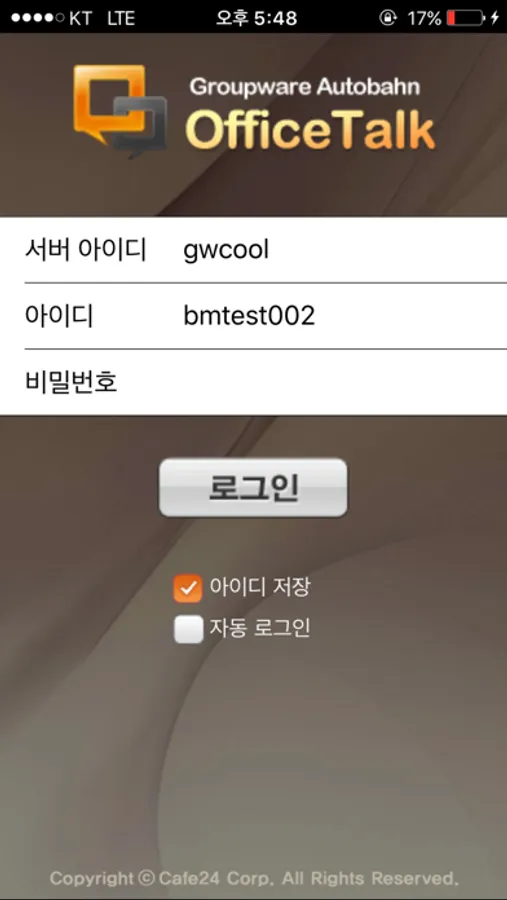 오피스톡은 cafe24의 그룹웨어 아우토반 서비스를 사용하는 분들에게 제공하는 무료 기업용 모바일 메신저 입니다.