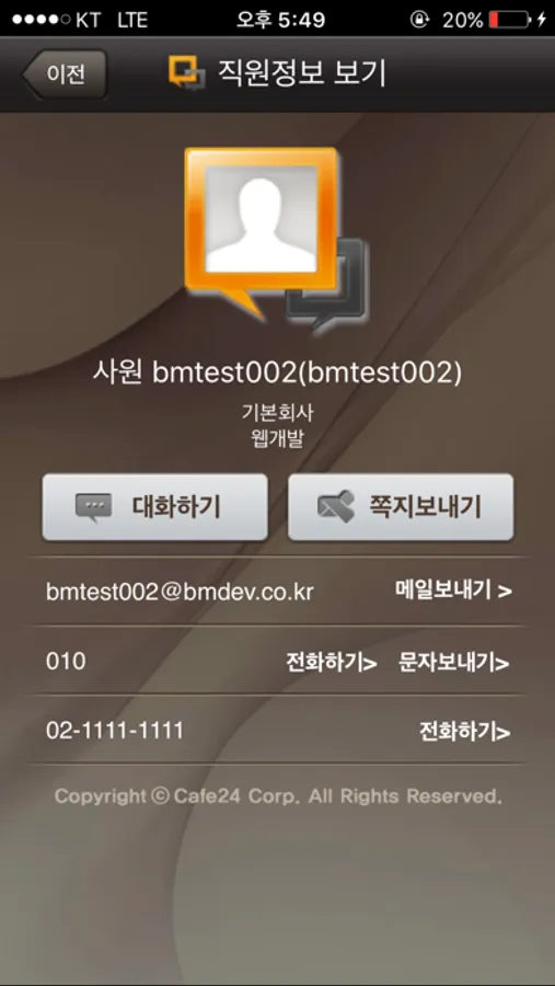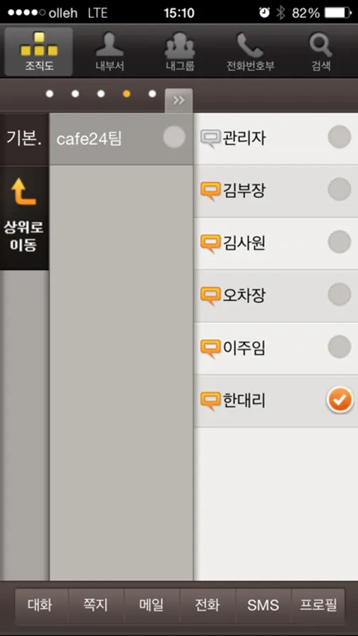 - 그룹웨어에서 등록했거나, 관리자가 등록해 놓은 사내, 부서, 개인 주소록을 이용해 전화/SMS/E-mail 발송이