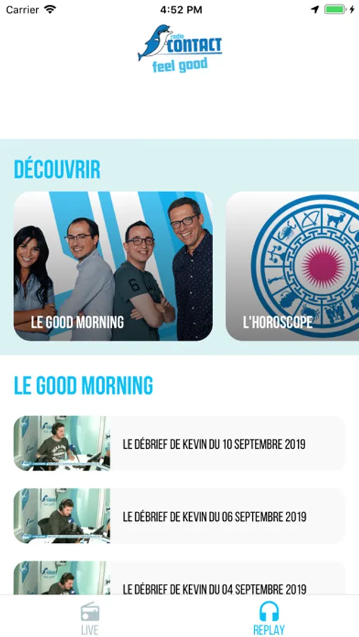 Découvrez la playlist des derniers titres joués, regardez Radio Contact en télévision et réécoutez aussi les meilleurs moments de vos programmes préférés comme le Good Morning, l'Instant..., l'Horoscope, etc.