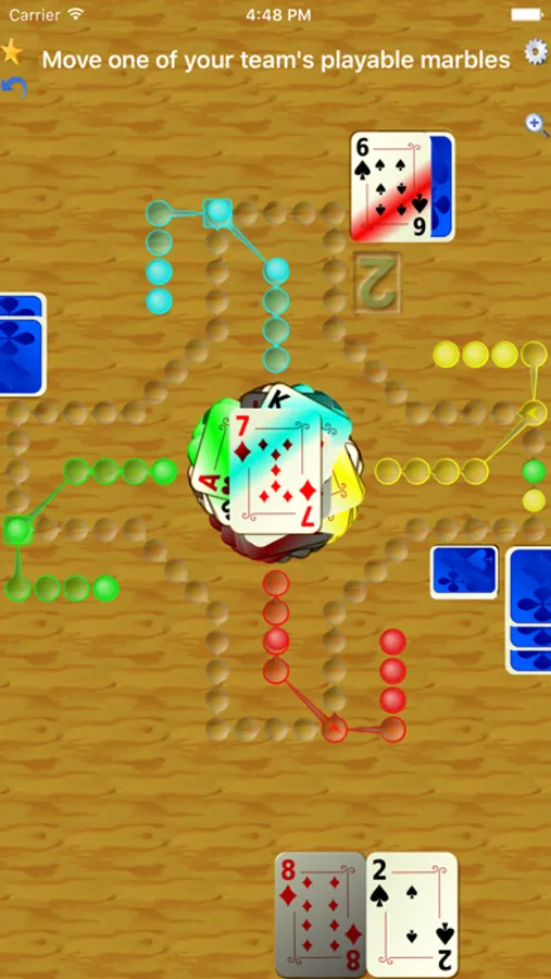 Invite friends to a multiplayer game, or find other players on the Internet! The players see your board and play their cards and marbles on their iPhone, Mac, iPad, or iPod touch. Your devices communicate easily over the Internet via Game Center, or locally (no registrations needed) via Bluetooth or Wi-Fi network. The app supplies bot players on empty game seats, so you can finally play with your friends even if you are missing a third or fourth player.