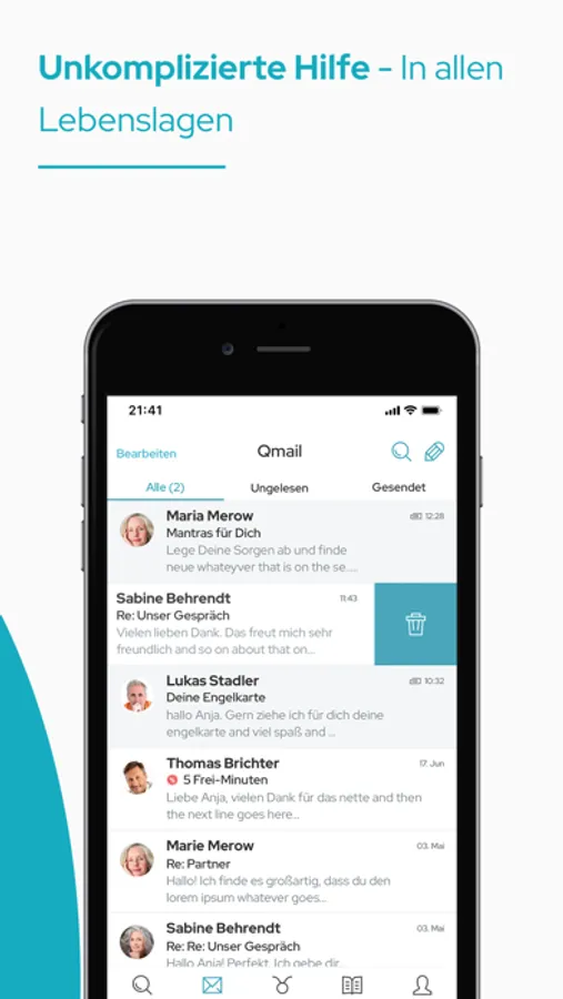 Die Ansicht von Beraterprofilen und erweiterten Bewertungen wechseln Sie durch eine einfache Wischgeste.
