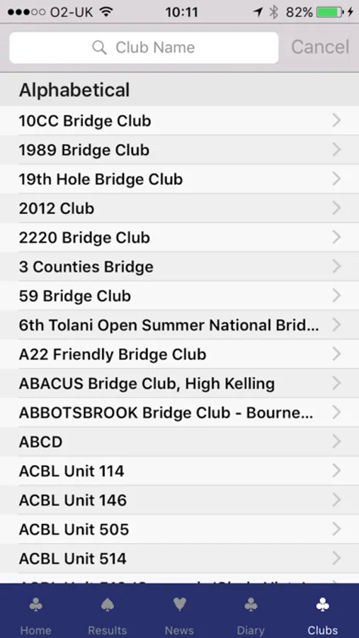 The bridgewebs app allows users to access details of their bridgewebs web sites directly on their smartphones and particularly focuses on the latest information. It can be personalised so that you can enter which clubs you play at and then you can quickly see the information for all the clubs selected. There is no need to switch to pages for each club.