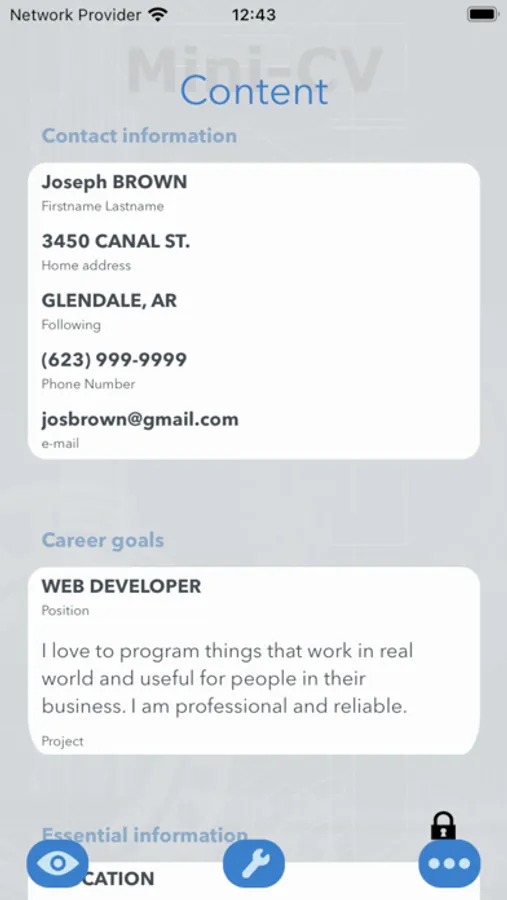 • Export your mini-resume by e-mail ( pdf file and png images ) for remote printing.