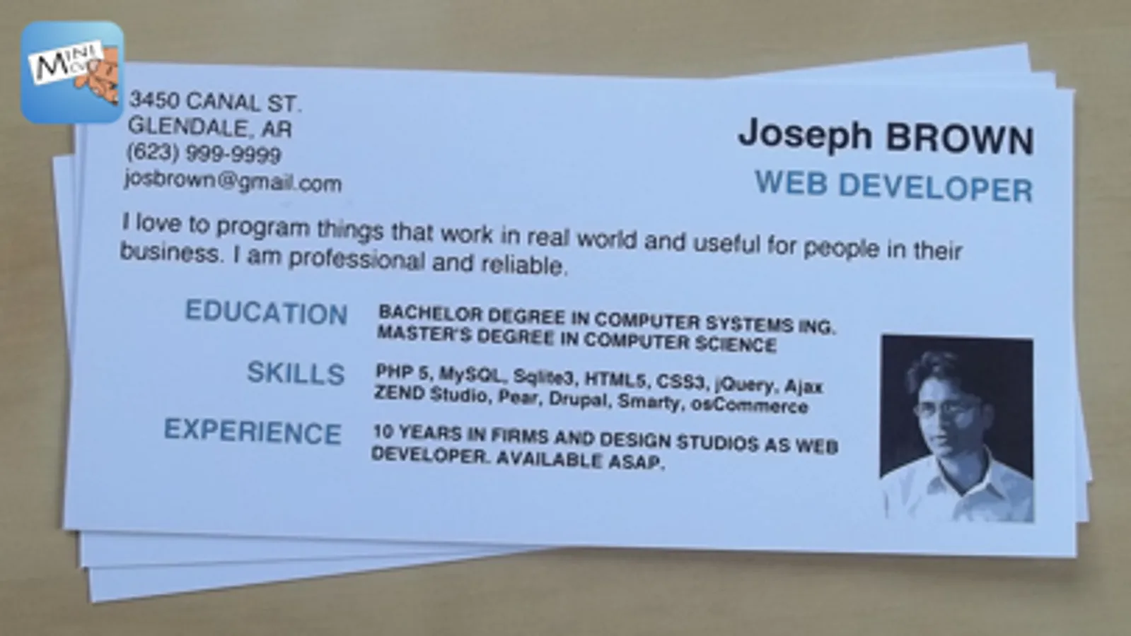 In just a few clicks, create your mini-resume with either a photo or a QR code and stand out from other applicants!
