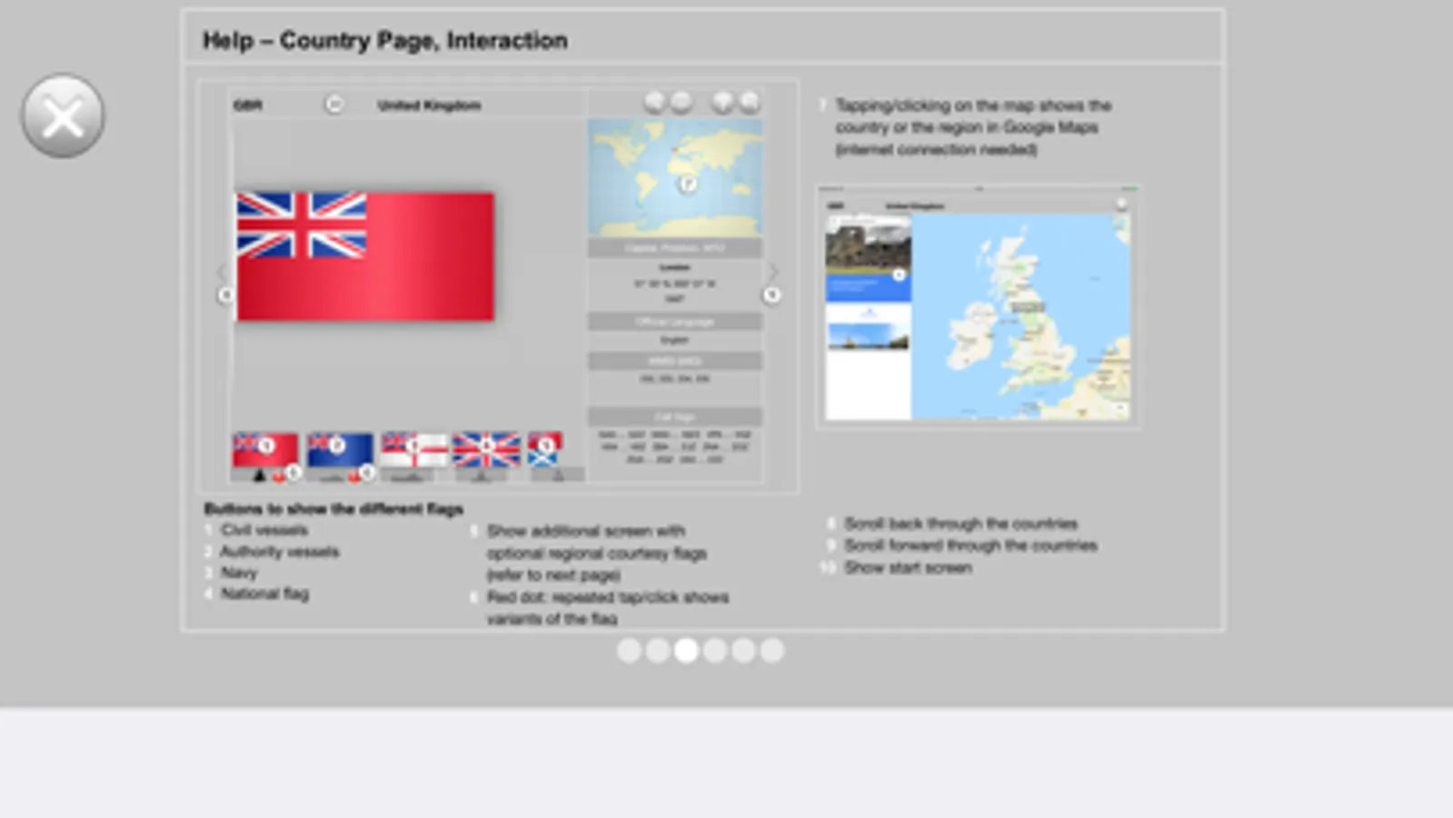 World Ensigns is a visual encyclopedia of naval ensigns. The navigation in World Ensigns is intuitive and language independent. Thanks to the numerous index functions of World Ensigns you can easily find flags of ships and their respective countries. World Ensigns includes 260 interactive pages for 242 countries or regions and and includes a total of 1005 flags.
