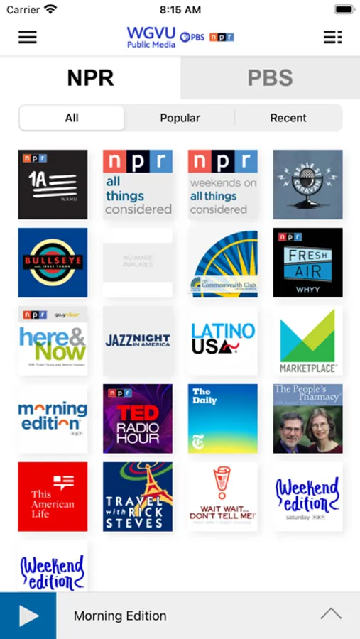 • When listening to programs, individual segments (when available) are listed so you can review and choose one or listen to the entire program.