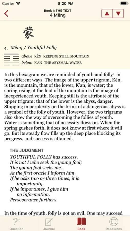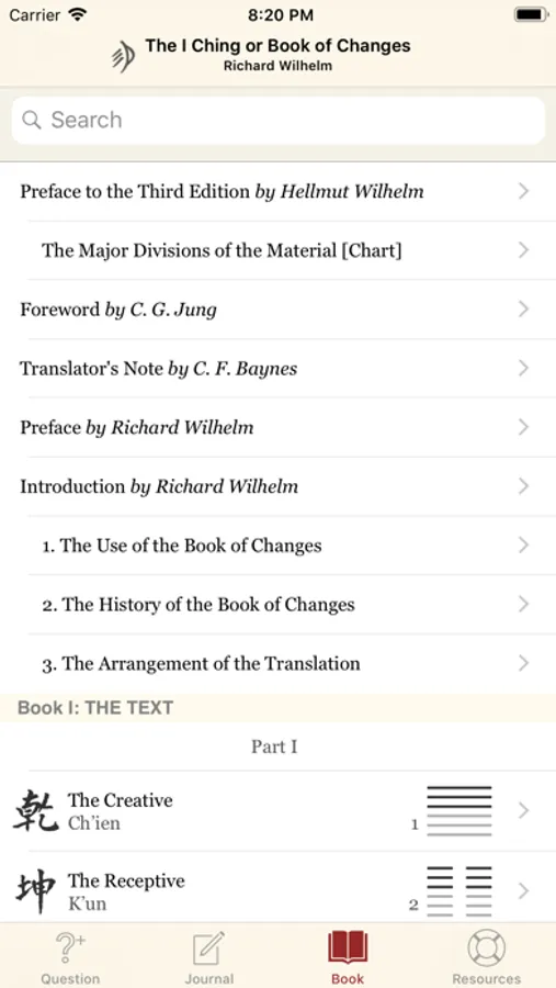 The complete work is available in three books. Book I is included with the I Ching or Book of Changes app. Book I includes Judgments pertaining to the diagrams as a whole, the line texts, and the Great Images.