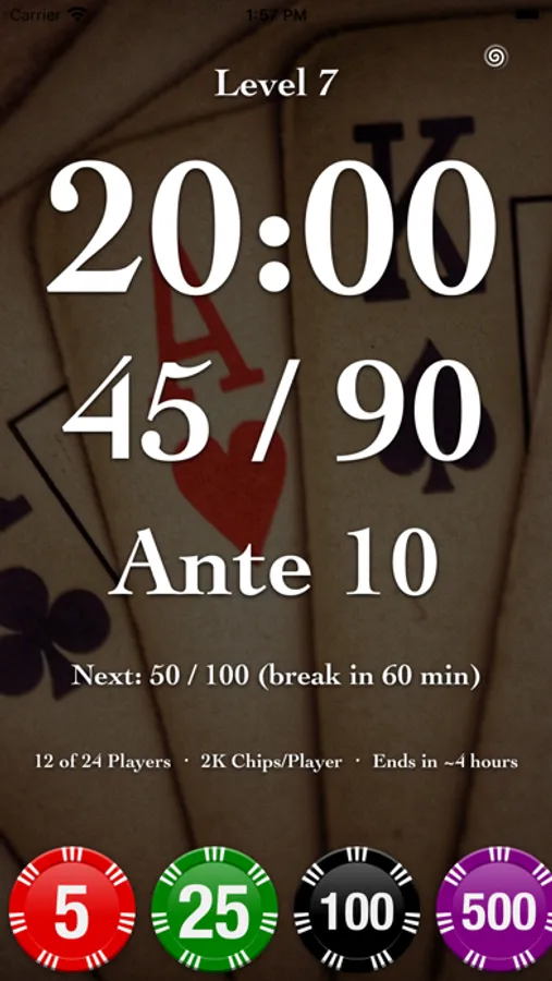 • Fully customizable tournament timer: Have it automatically pause after any level or break, or just have it run without pauses to completion. And, it will keep your device from sleeping while your tournament is running.
