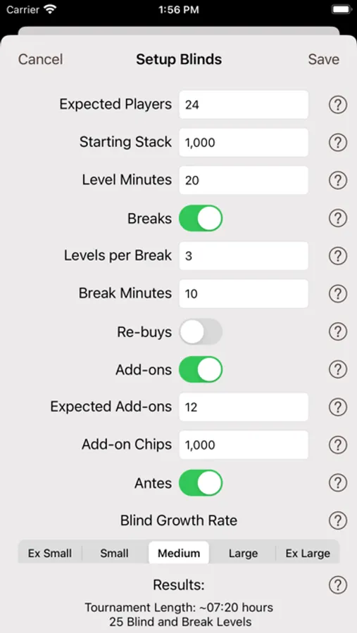 • Easy to use: Just enter the number of players and starting chips and it will create a high quality custom blinds schedule that is ready to use.