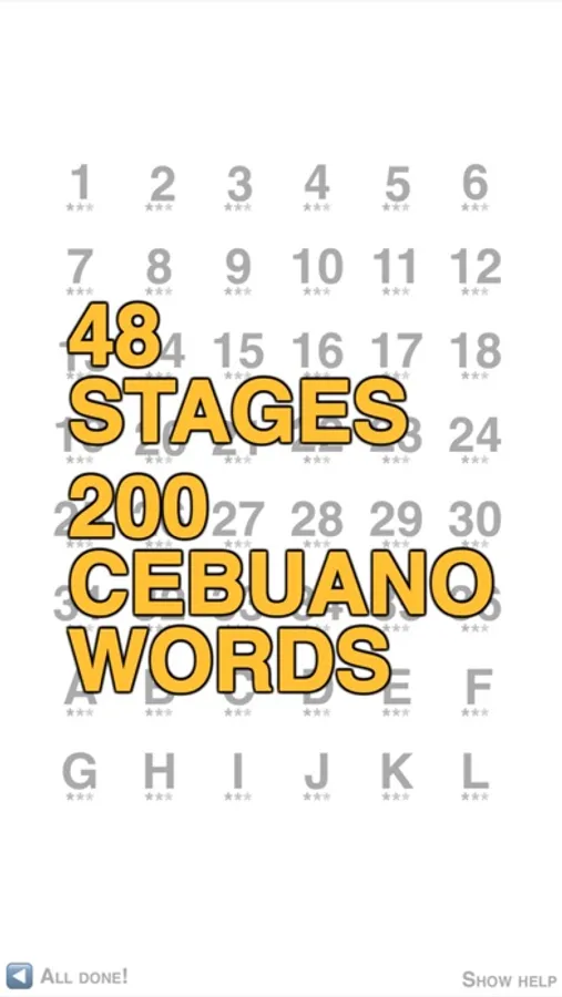 Learn Bisaya in seconds and maintain it year-round. Collect stars by identifying commonly used Cebuano words and phrases. Memorize over 200 vocabulary words in a series of short but increasingly challenging word puzzles. Then finish the game to unlock fresh challenges each day and maintain your newly-minted vocabulary.