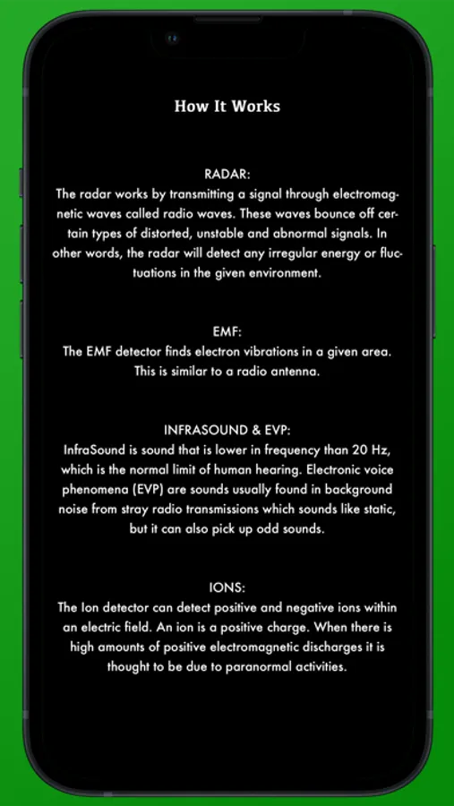 InfraSound is sound that is lower in frequency than 20 Hz, which is the normal limit of human hearing. Electronic voice phenomena (EVP) are sounds usually found in background noise from stray radio transmissions which sounds like static, but it can also pick up odd sounds.
