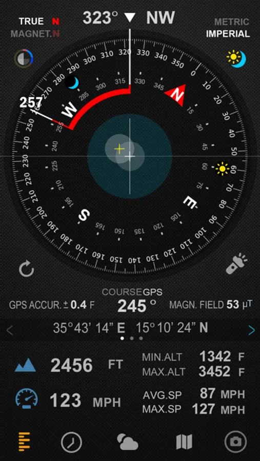-- Ability to switch between mph, feet units and kmh, meter units.