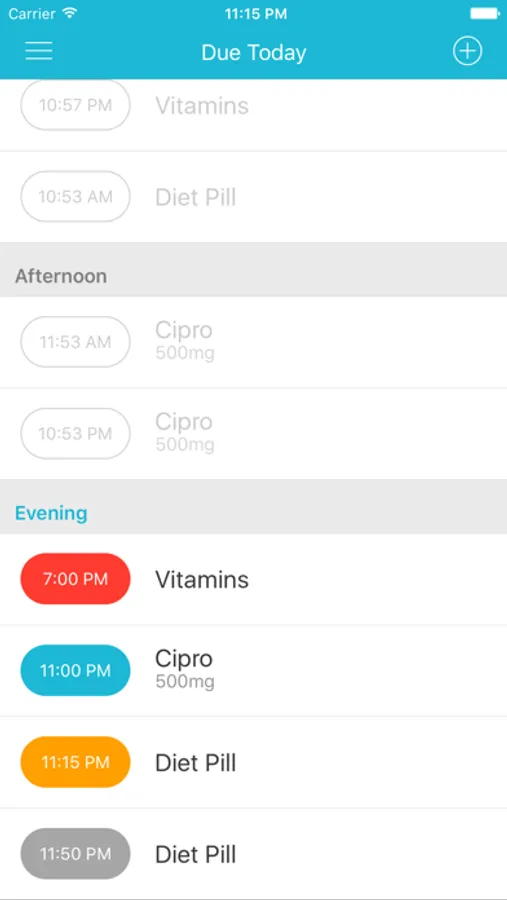 - Due Today view - see all scheduled doses for Today grouped and sorted by time