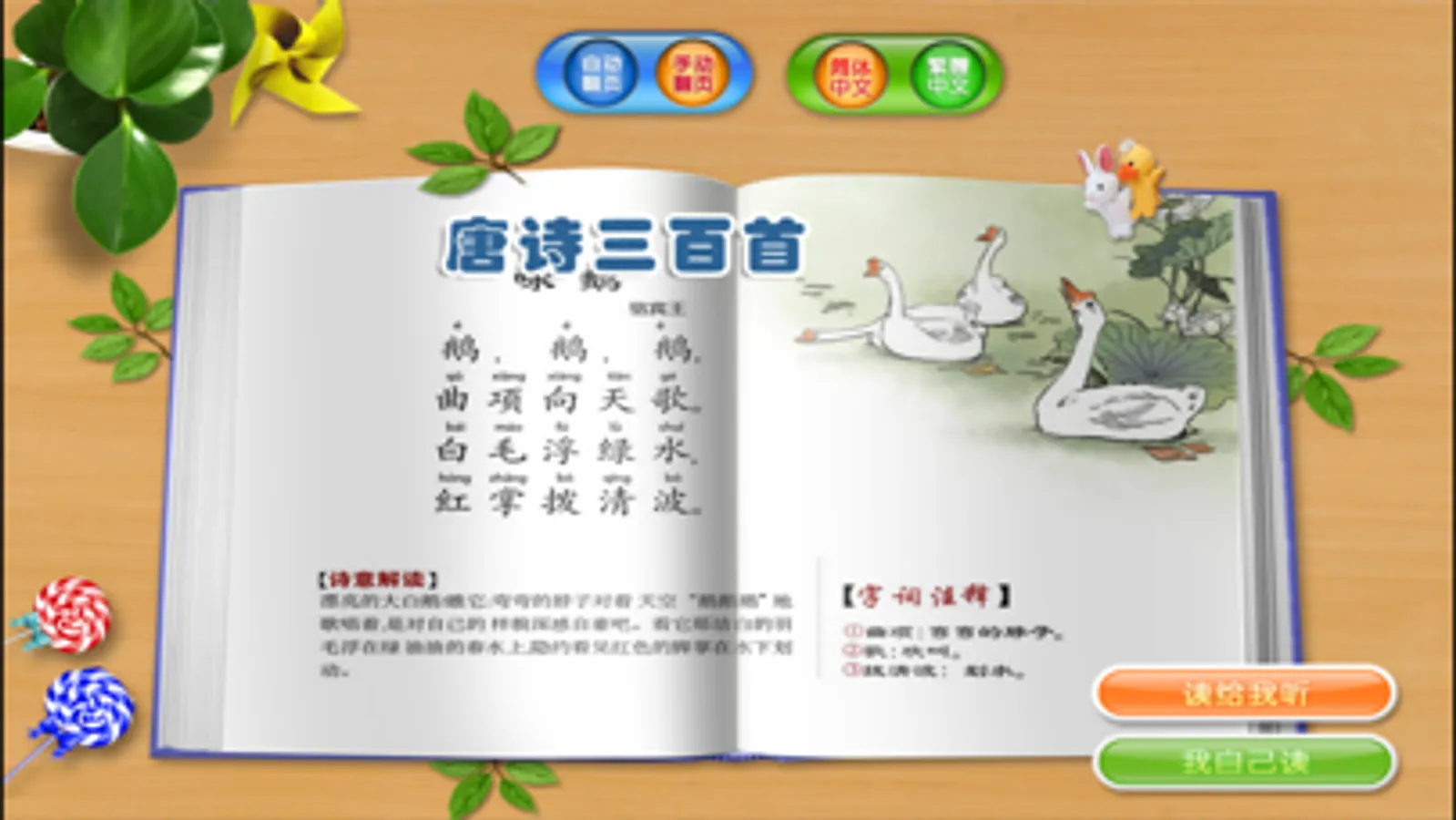 iBigToy 出品的唐诗300首。每页都能动,让孩子爱不释手。