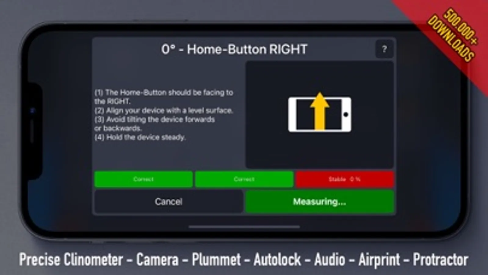Measure angles and slopes: The most precise clinometer and digital bubble Level in your pocket. Including Flashlight + Compass + Ruler + Camera measuring - All in one handy app.