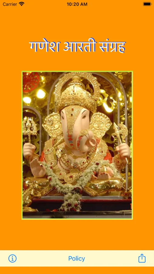 Ganesh Aarti Sangraha is a collection of many popular aartis of various Gods and Goddesses in India. It starts with Ganesh Aarti and ends with a Ganesh Prathana. All aartis are in Marathi, a local language in Maharashtra, India. The list of aartis included in this ebook version of iPad, iPod and iPhone is as follows: