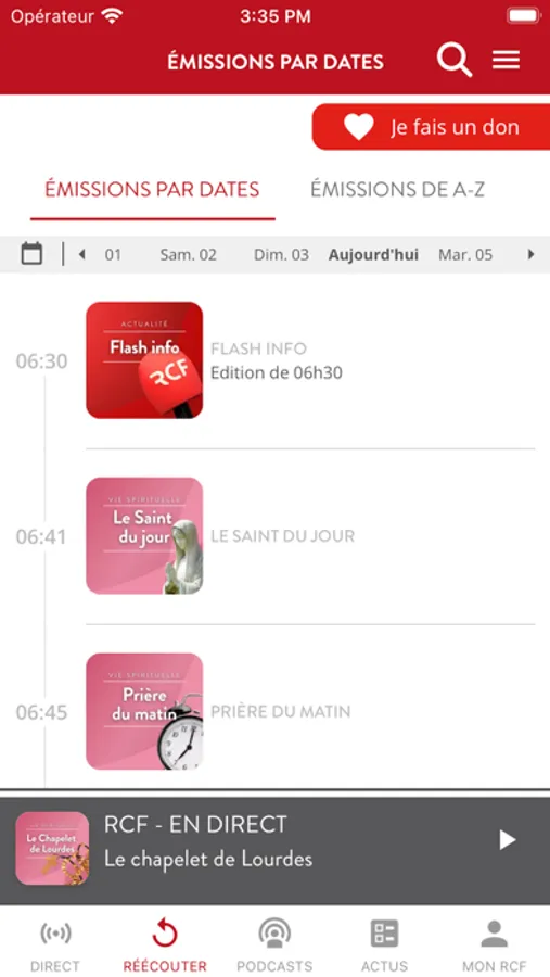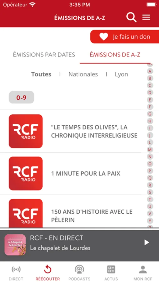 L'APPLICATION MOBILE RCF VOUS OFFRE DE NOMBREUSES FONCTIONNALITÉS :