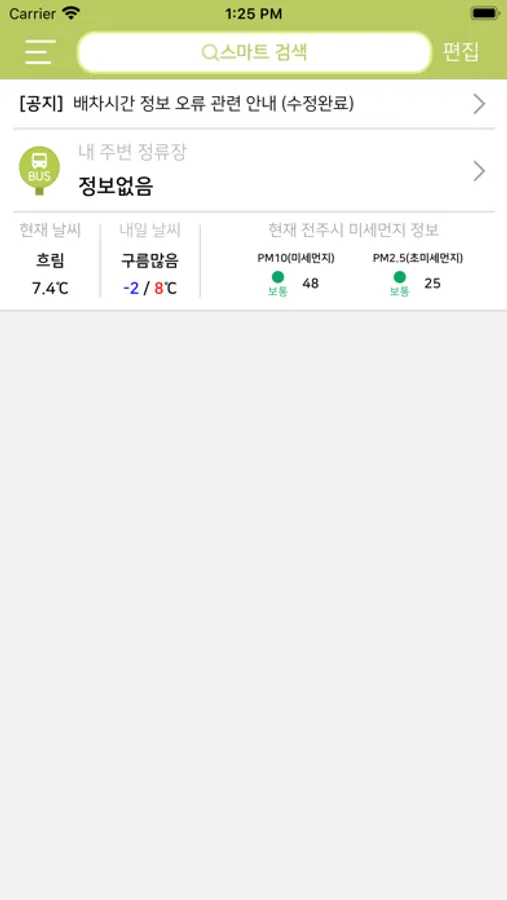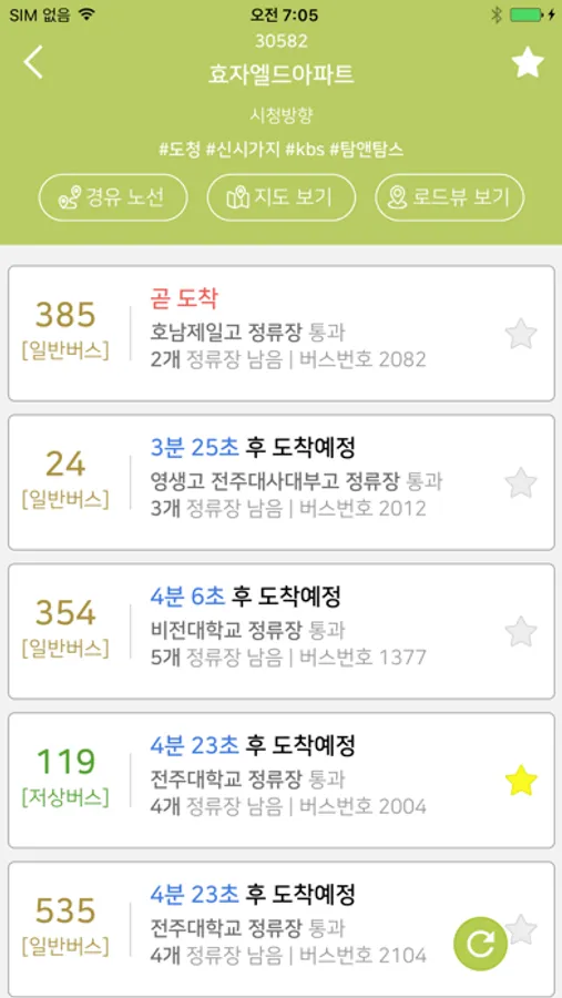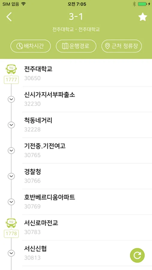 * 버스도착정보는 전주시에서 제공되는 정보이며 다소 오차가 있을 수 있습니다. 이로 인하여 문제 발생 시 개발자와는 무관하오니 이 점 양해 부탁드립니다.