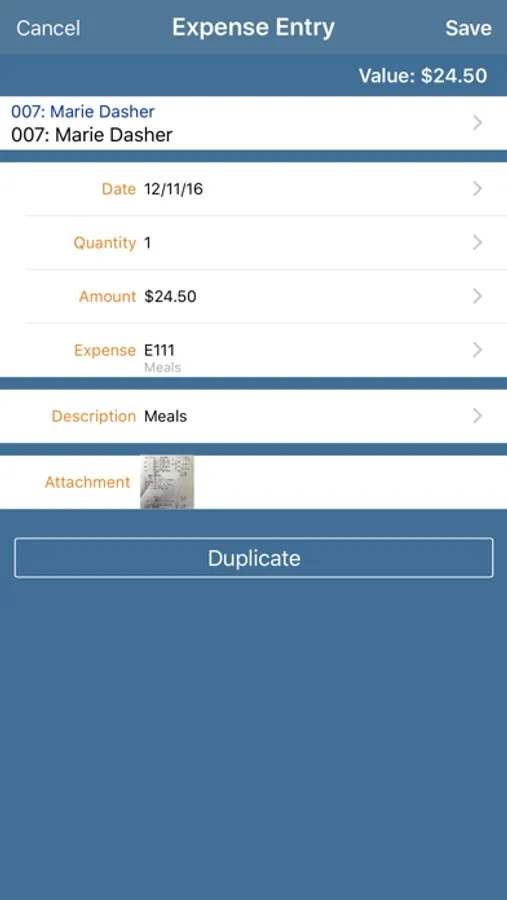 -Expense Entry (with support for image capture with camera)
