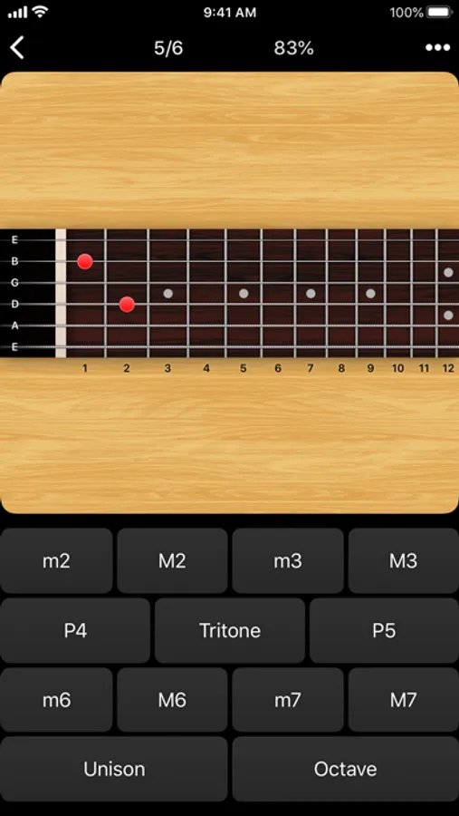 Tap the button corresponding to the played notes. If E and F are played, tap the "Minor 2nd" button.