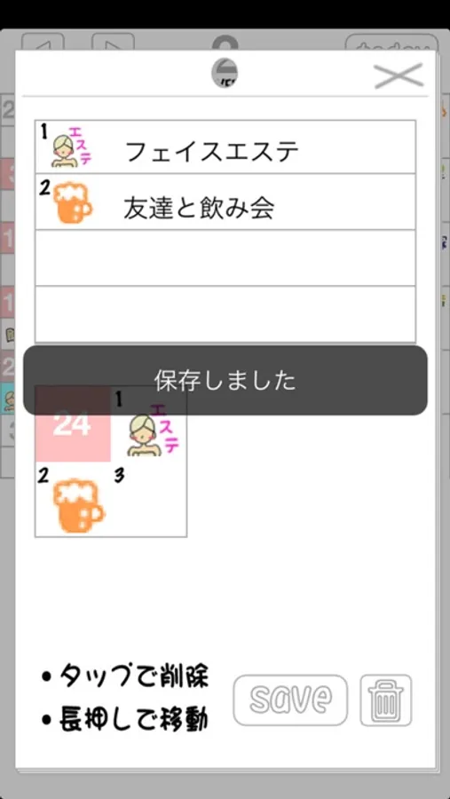 The stamp appears on the calendar, you can check the schedule at a glance.