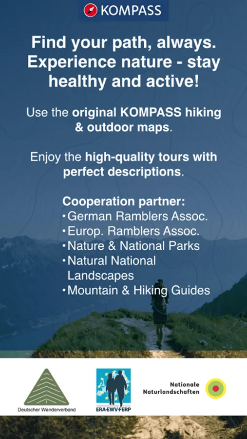 Wo der Asphalt endet, beginnt die Welt von KOMPASS. Die ganze Welt von KOMPASS gibt es in unserer KOMPASS-Wanderkarten-APP. Das bedeutet Zugriff auf echte Wanderkarten und auf über 6000 redaktionell geprüfte Wandertouren – offline Speicherung inklusive.