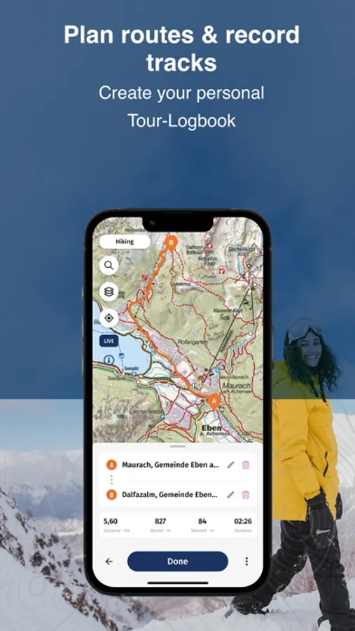 Es kommt nicht darauf an wie viele Kilometer Du gehst, sondern was man gemeinsam erlebt. Für diesen Anspruch unterstützt Dich die APP bei deinen Vorhaben mit perfekter Kartografie und allen Funktionen die Du für die Inspiration, Planung und Aufzeichnung einer Tour benötigst. Alle Funktionen im Überblick: