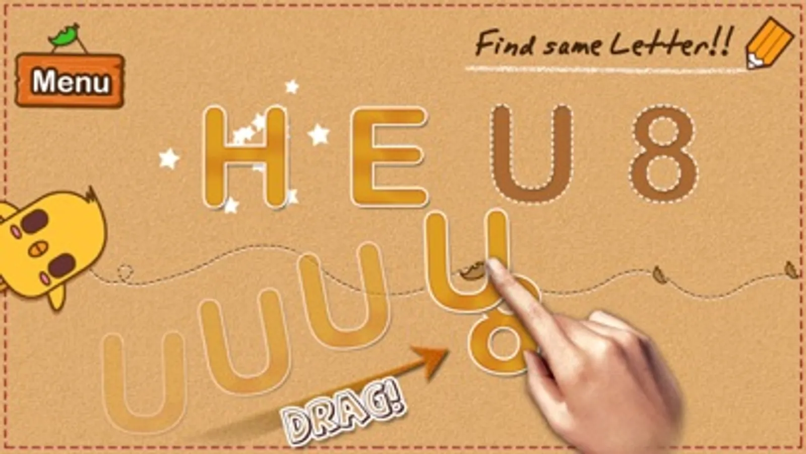 Drag each letter to same Letter. Your child will see fancy effect.