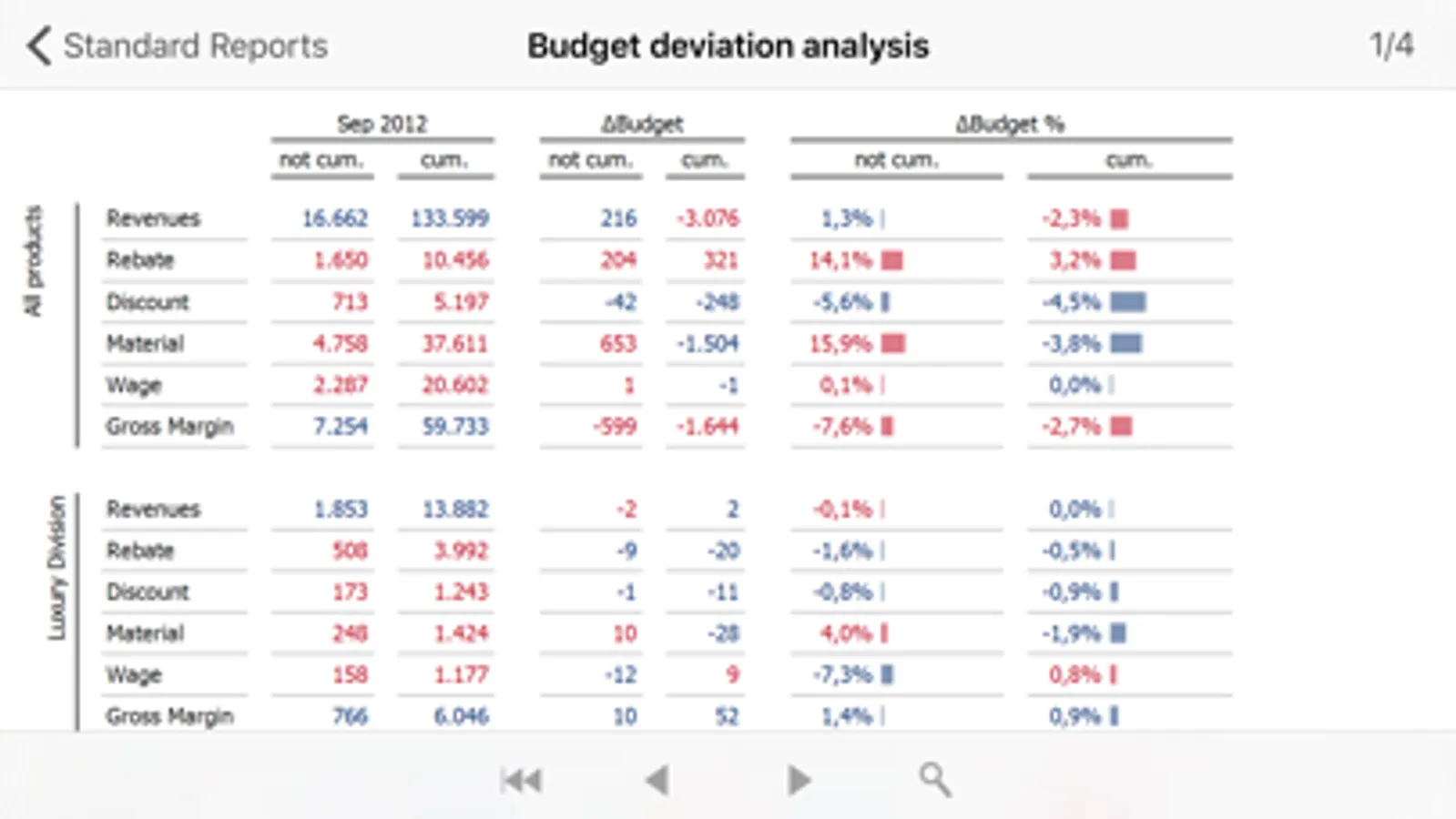 DeltaMaster is a Business Intelligence suite for the analysis, the planning, and the reporting of business data. Using the ReaderApp, you can provide iPhone, iPad, and iPod touch users with reports from DeltaMaster – whoever needs up-to-date information about their business on a mobile device, from board members to field staff. The DeltaMaster ReportServer updates, customizes, and distributes the reports automatically.
