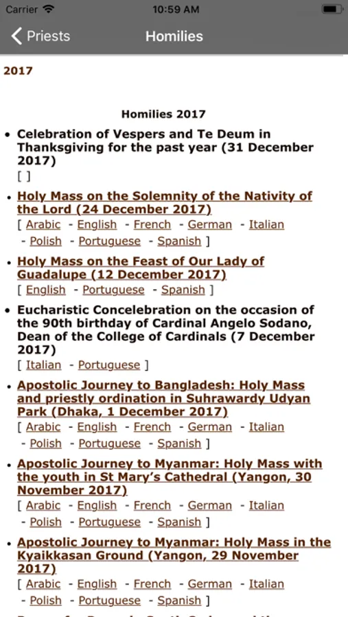 We hope to add additional Priests in the near future. If you know of someone that you would like to be included, please email us and we will reach out to them. Also, if you are a Priest or Deacon and would like to share your Homilies, we would be pleased to add you to this application.