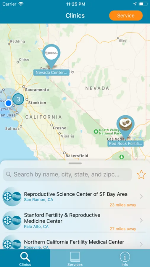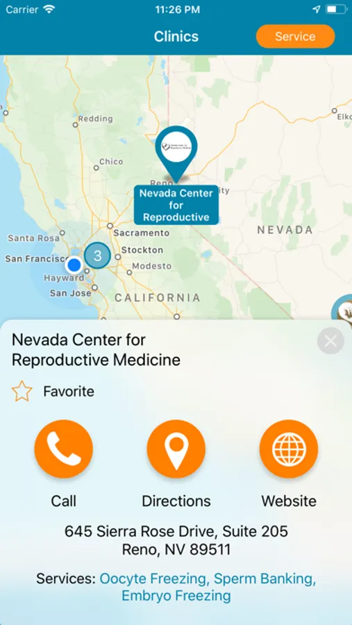 - An interactive map of local fertility centers in Reprotech's nationwide network who provide cryopreservation services, including quick call, directions, and website buttons