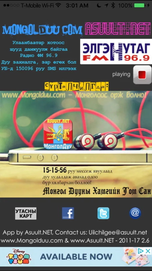 Mongolian Radio "Elgen Nutag" (Heart Land) 96.9 on your iPhone/iPod/iPad live streaming from Ulaanbaatar, Mongolia!
