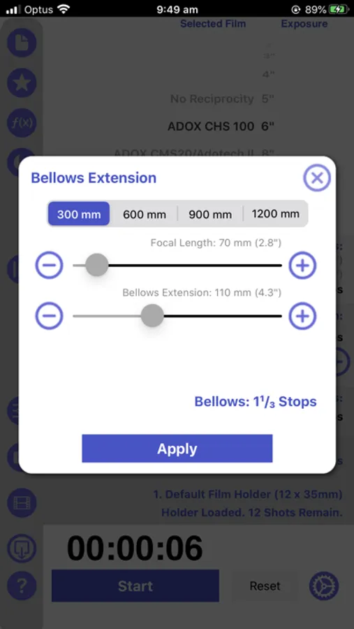 You may need to setup Reciprocity Timer in Settings → Notification Center to ensure the app's timer can notify you when exposures are ending and your device is asleep.