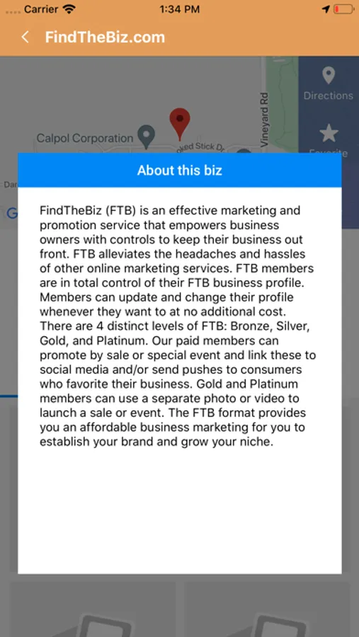 Find businesses in your local area and beyond. The FindTheBiz App (FTB App) is great for finding businesses in your community. It sheds light on home-based businesses on your street or just around the block. The FTB format gives our app users the ability to be more informed about businesses listed with FTB without having to step foot into the business or view the business website, although it will also link to FTB member’s websites. The FTB App search display will inform you of any business(s) having a sale or special event (i.e.: open house, mixer, special days of worship, etc.). As a FTB registered app user you will be able receive special offers from businesses you favorite via push notice.