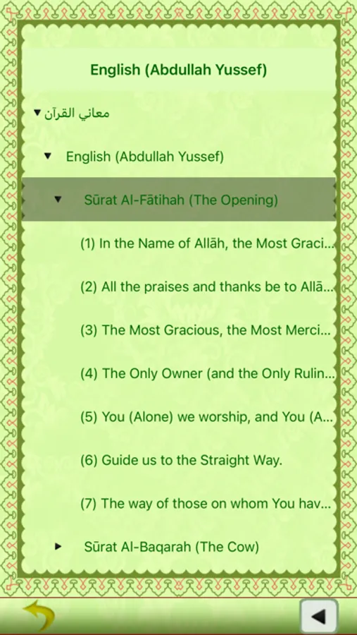 - Qur'an translations: English (Abdullah Yussef), English (Mohammad Mohsen Khan), French.