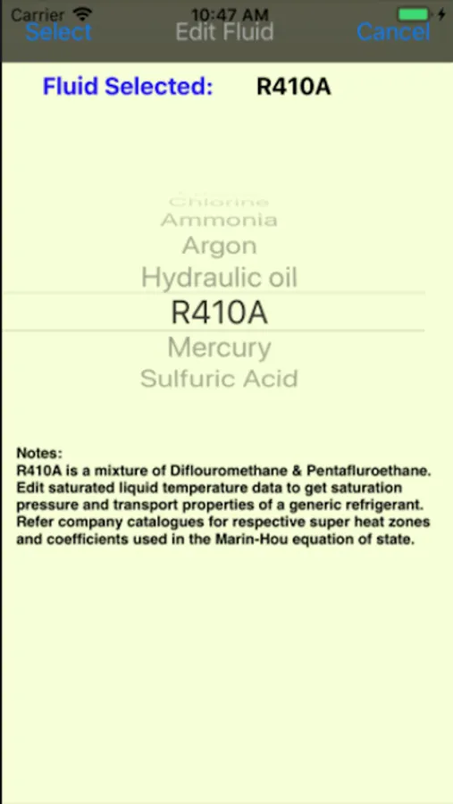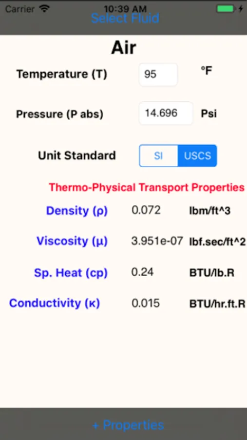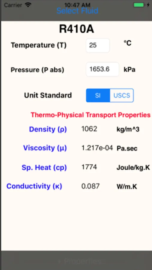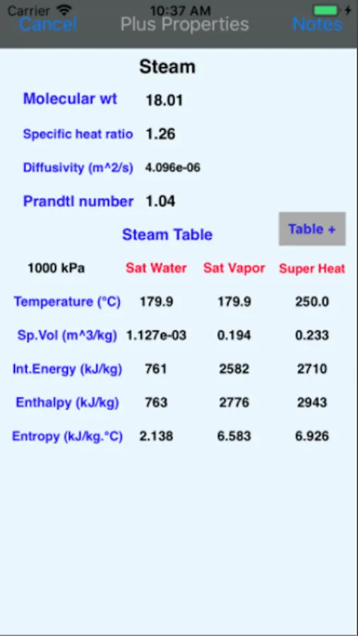 This app provides important thermo-physical property data on seventeen fluids that are very common in industrial applications. Data helps in computation of various parameters pertaining to flow system design involving heat and energy transfers. This App can become very handy for engineers and students dealing with thermodynamics, fluid mechanics and heat transfers as a quick reference guide.