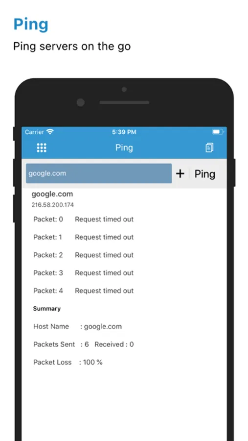 ManageEngine Ping Tool for iPhone offers network monitoring capability from your mobile. You can get the complete view of what is happening across your LAN and Websites.