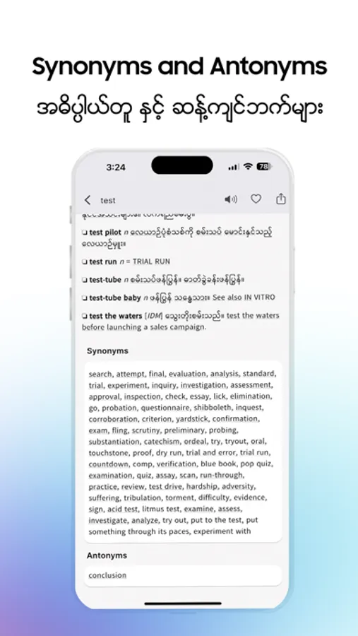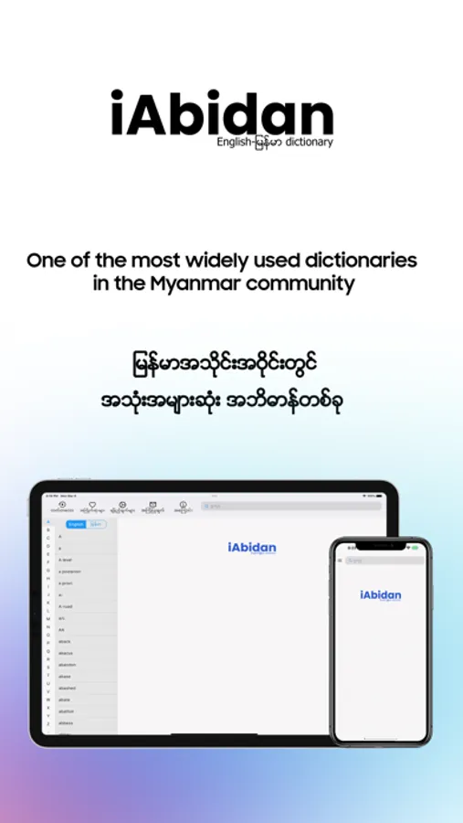 Since 2011, the iAbidan dictionary has been one of the most widely used dictionaries in the Myanmar community. The iAbidan dictionary provides not only the definition of each word but also its pronunciation, synonyms, antonyms, usage examples, phonetics, and voice capabilities for your devices. This comprehensive dictionary is a great resource for anyone looking for an all-in-one language tool. Moreover, the iAbidan dictionary is available both online and offline, allowing you to access it anytime and anywhere, even without an internet connection.