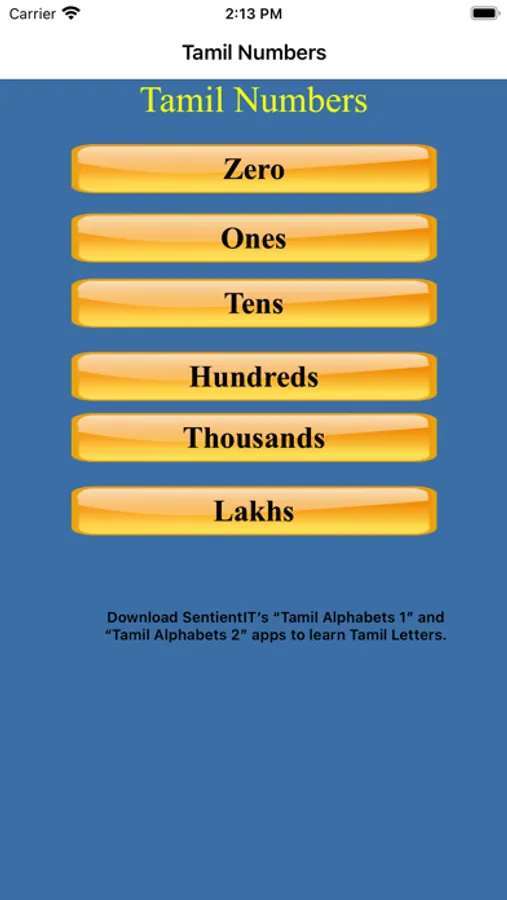 "Tamil Numbers " app is a great choice for the preschool and kindergarten children to learn or for the parents to teach 'Tamil Numbers ' easily and quickly. This application is used for the kids to improve their listening and speaking skills while having fun.