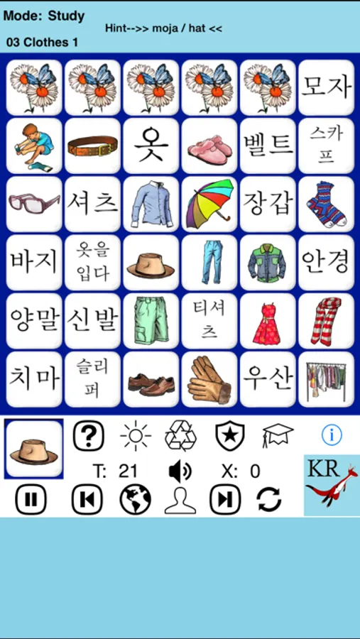 Korean Words 4 Beginners – is a tool for learning basic Korean words. The game works by matching English to Korean words and pictures, and for matching Korean words to English words and pictures. A “Study Mode” supports learning the basic words, and a “Play Mode” allows you to practice word recognition.