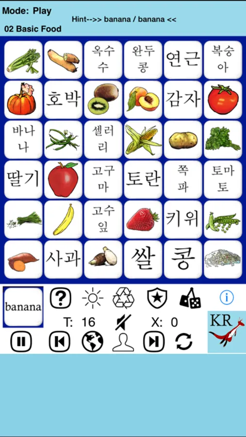 The game includes 288 basic words in 16 sets, with 2 free sets included and 114 more sets of words available by a single low-cost in-app purchase. The sets include many basic nouns, verbs and adjectives. A good range of useful words are covered that will be useful to understanding and expressing basic concepts for the beginning and elementary Korean language learner.