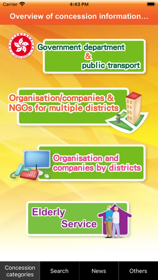 This App is to facilitate both the elders and their family members to search and select the concessions and services under the “Senior Citizen Card Scheme” of Social Welfare Department. In this App, traditional Chinese, simplified Chinese and English are available. Besides, text to speech function is available through computer voice. The ‘What’s new’ page (updated for every two months) highlights the newest concession offers, while a search function helps users to access the concession information speedily.
