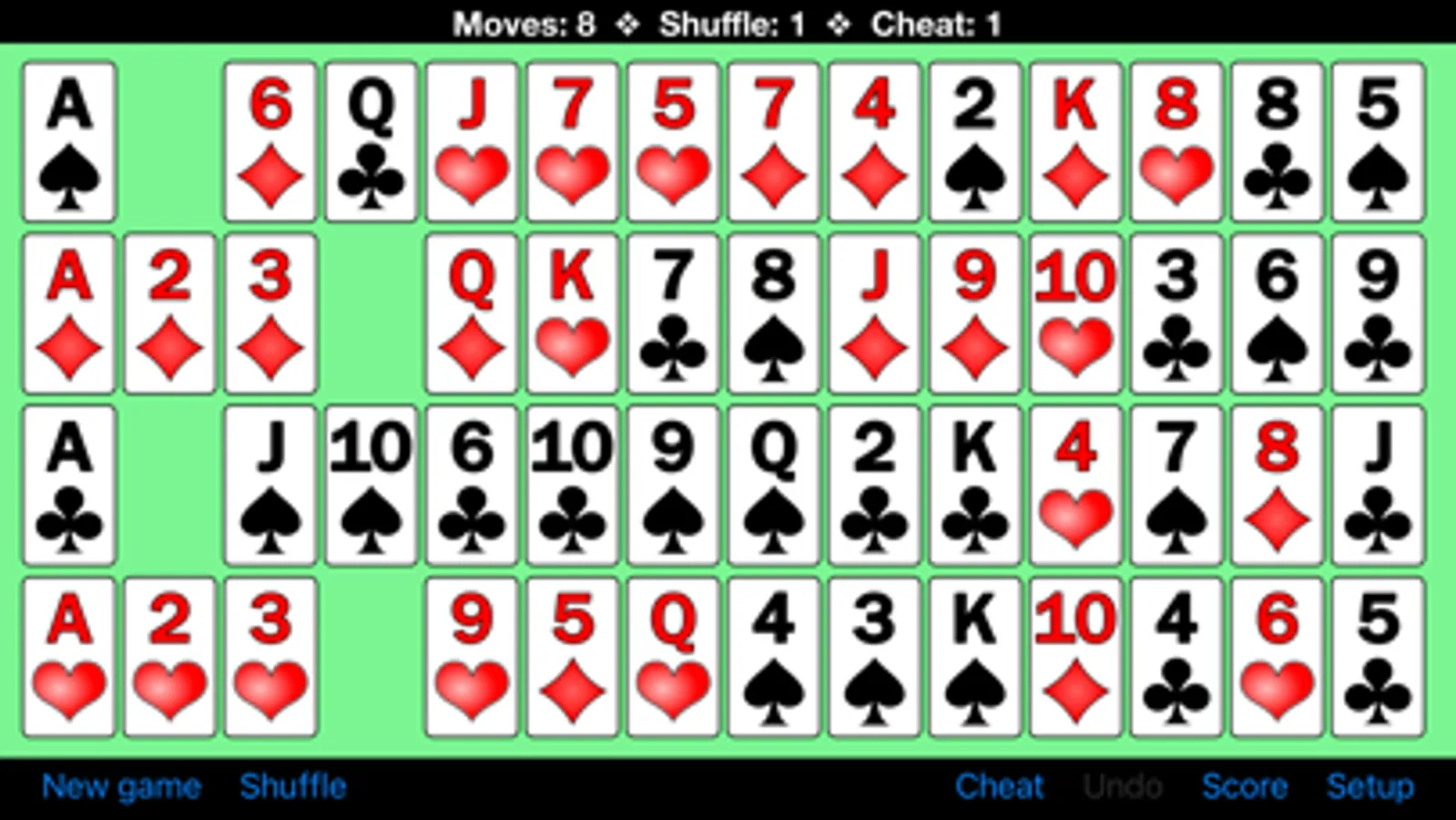 The solitaire has been solved when all the cards in each row are placed in numerical order by suit.