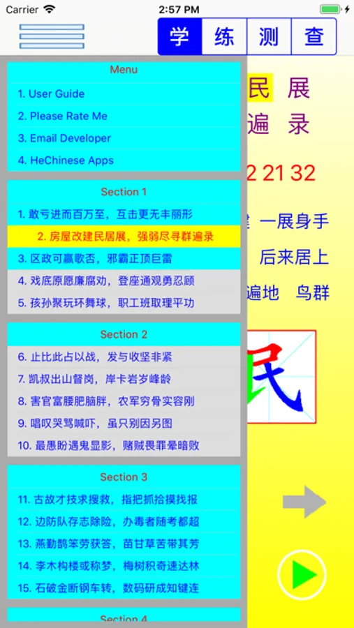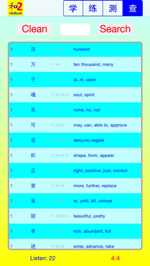 HeChinese Study Method starts Chinese study from 25 characters, it now has a systematic theory and practical technology for Chinese writing & typing, for pronunciation, and for memorizing sounds and meanings. It evolved to have a HeChinese series of books, multi-platform applications, and quick HeChinese courses.