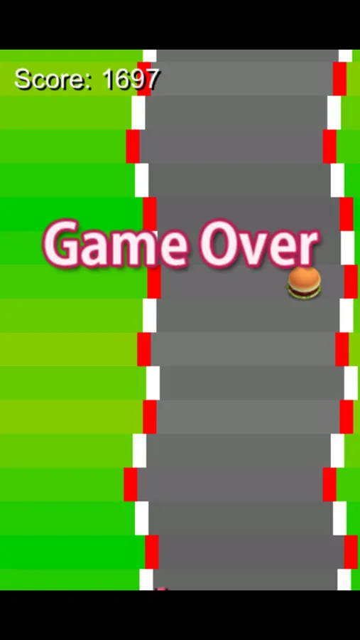 If the car hits the side of the road, the car is pushed back. The game ends if the car goes out of the bottom.