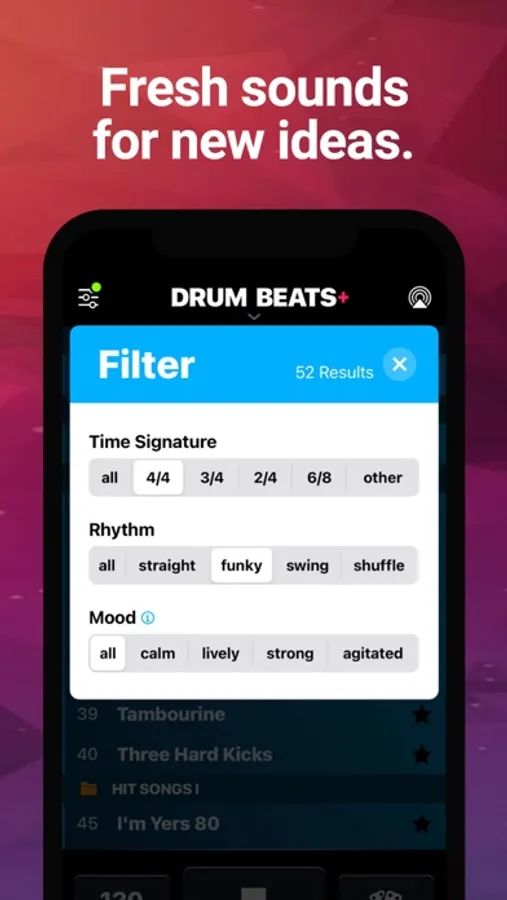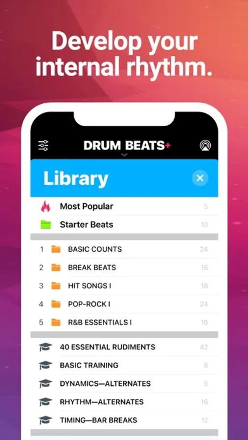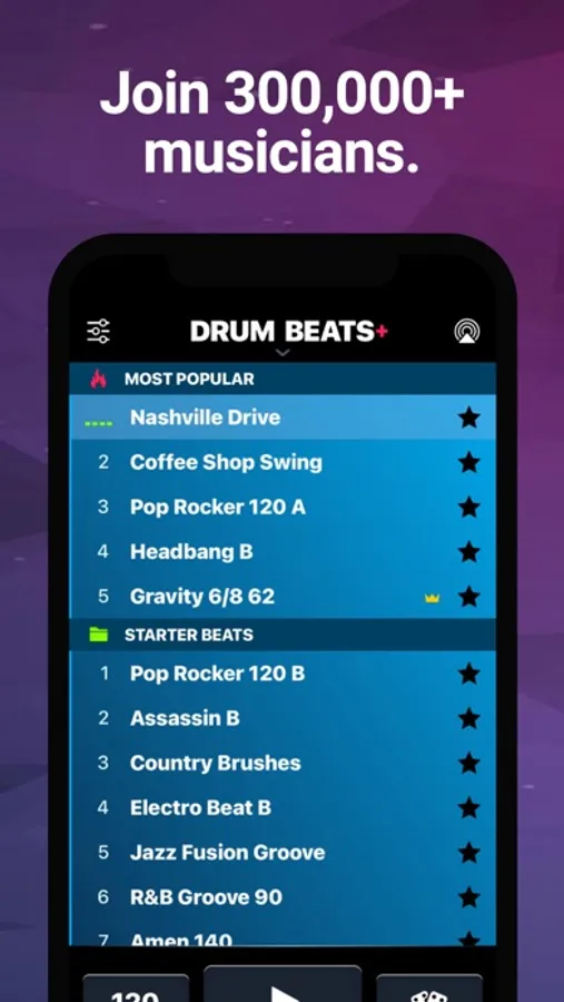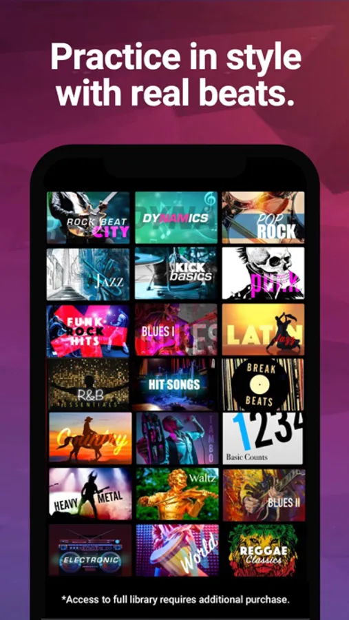 No need to replace the app with a complicated drum machine, or even a drummer. Just add more beats with our Pro Library. Preview everything inside the app.