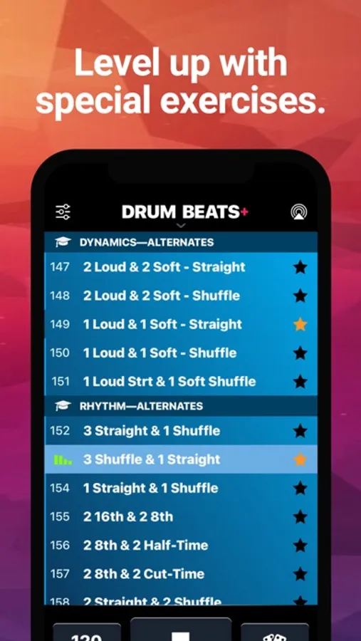 • Improve your timing with Bar Break beats that rest for entire bars or more