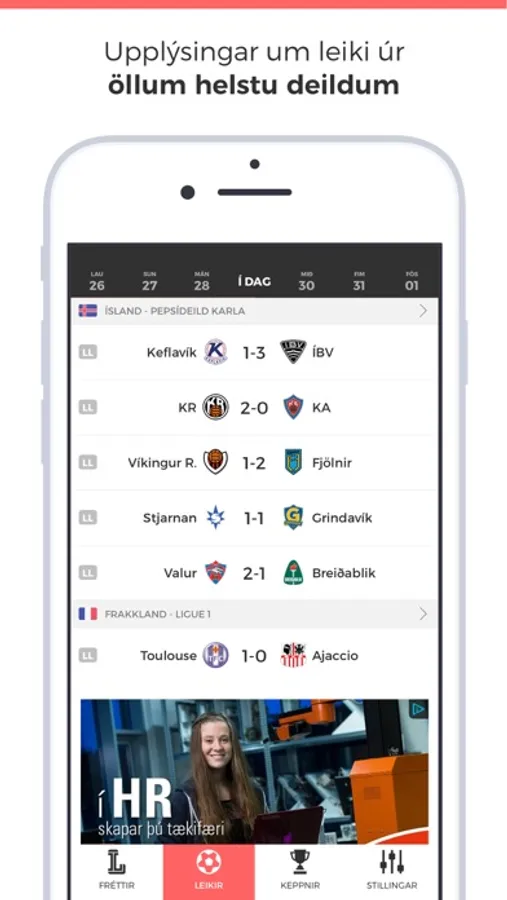 • Úrslit og dagskrá leikja úr öllum helstu deildum