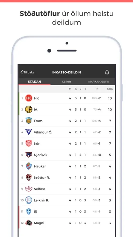 • Staðan í öllum deildum - Lifandi staða þegar leikir eru í gangi